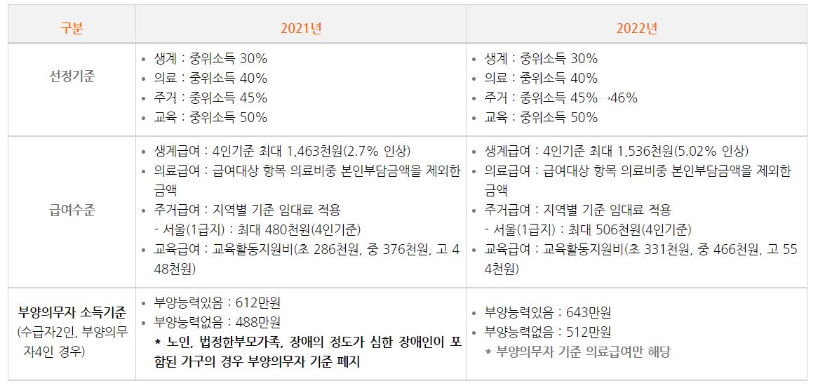 - 기존 기초생활보장 수급자 별도 신청 불필요