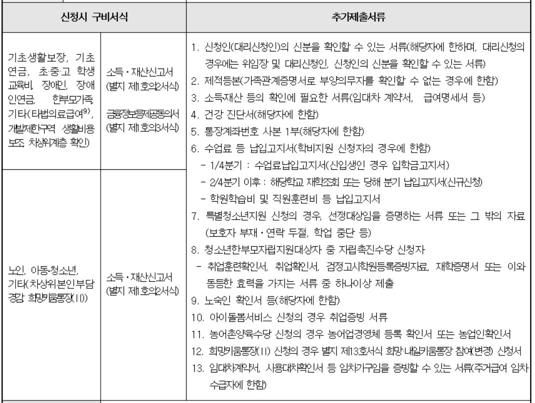 - 가구 특성에 따라 추가서류 제출 필요