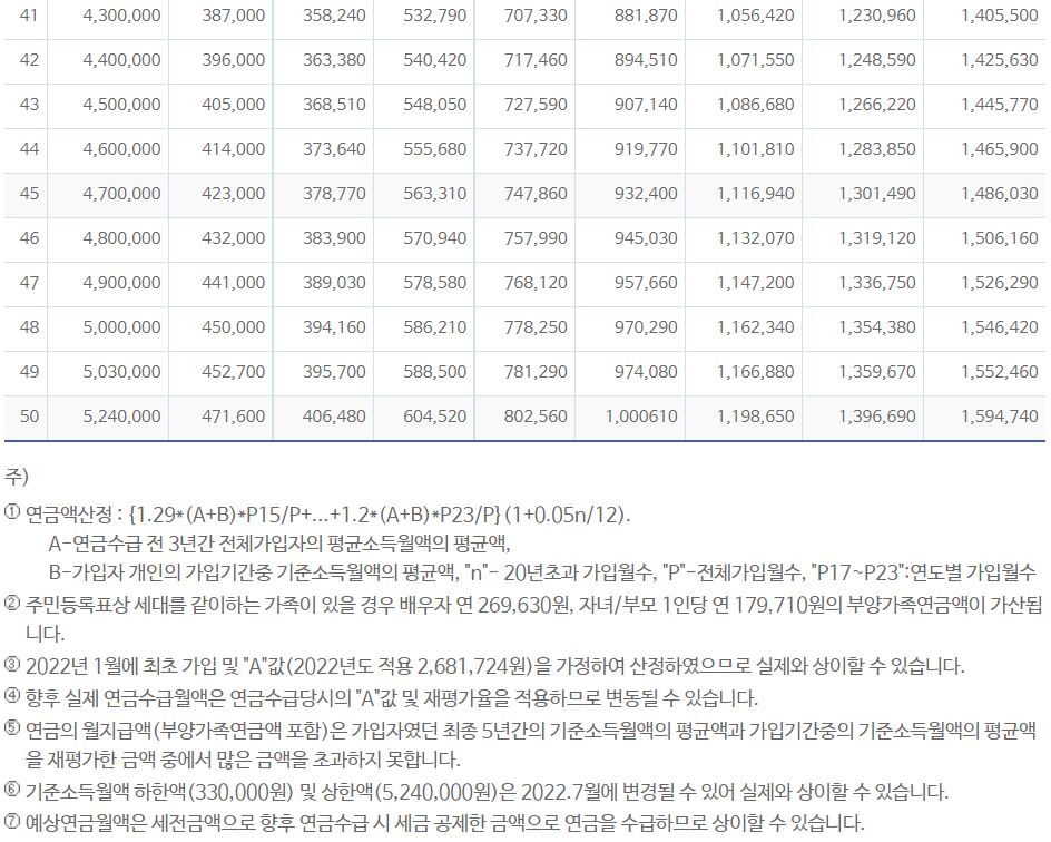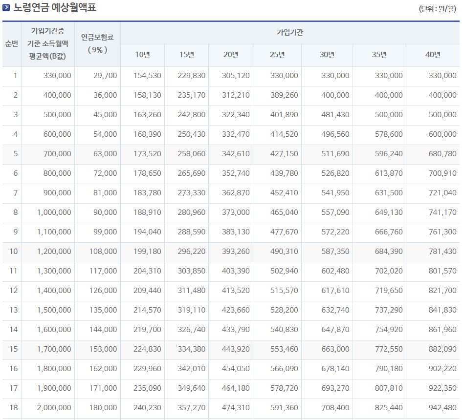노령연금 예상월액표를 첨부하니, 표에서 확인하셔서 참고하시면 됩니다.