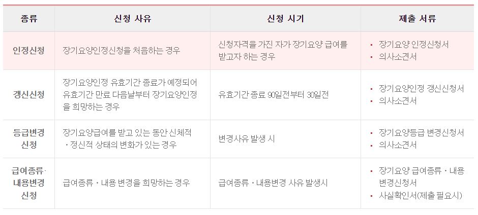 ▶ 장기요양인정 신청의 종류