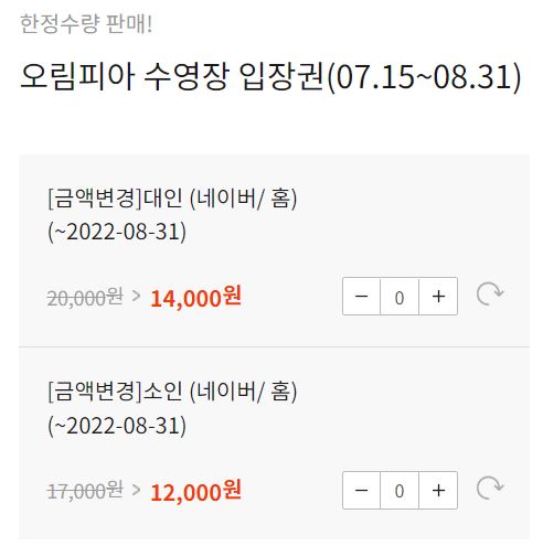 2022년 8월 31일까지는 대인 1인 14,000원 소인 1인 12,000원 입니다.