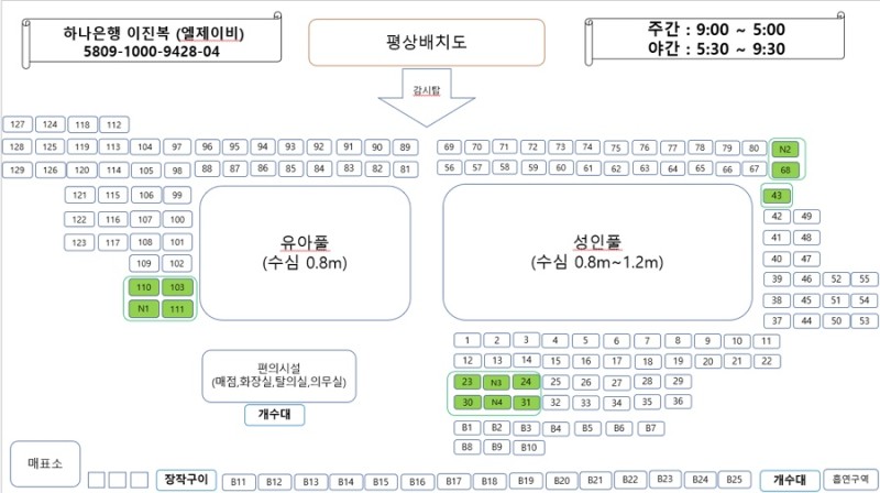 (점심 휴식시간 12시 ~ 13시 -> 수영장 정비시간으로 입수 불가 시간)