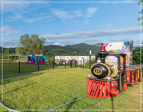1280평 천연잔디장, 대형 수영장, 14인승 대형 증기기차, 에어바운스,