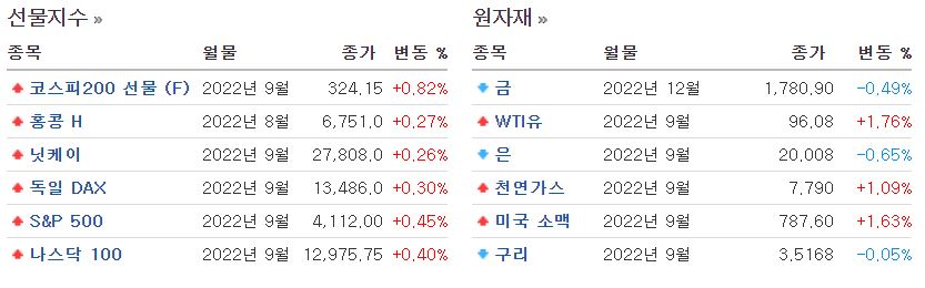 세계 실시간 지수를 실제로 확인이 가능합니다. 해외선물 거래를 하시는 경우 빠른 확인이 필요하니 참고하시면 좋겠습니다.