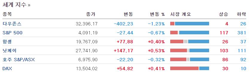 위의 사이트에서 실시간 해외지수를 확인하시고 매매에 도움이 되시길 바랍니다.
