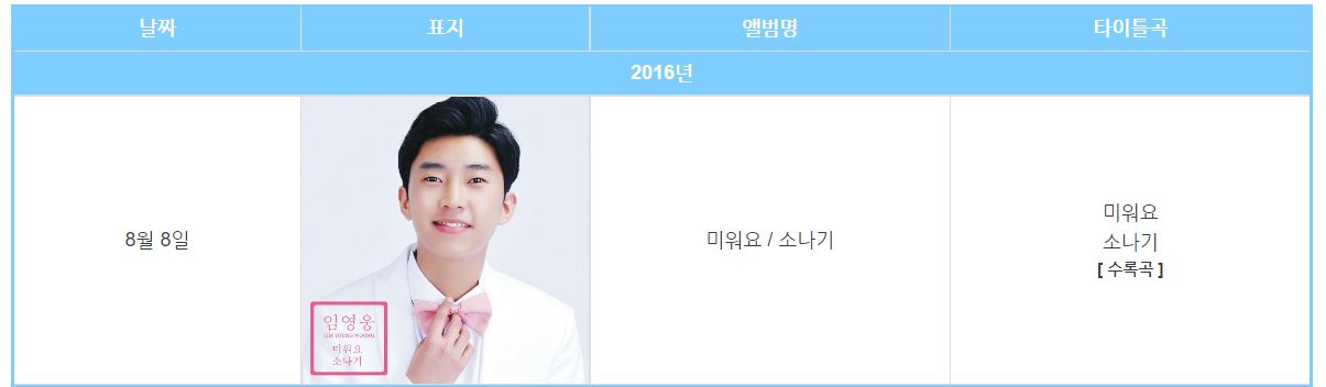 임영웅은 2016년 8월 8일 디지털 싱글 <미워요>로 데뷔하였습니다.